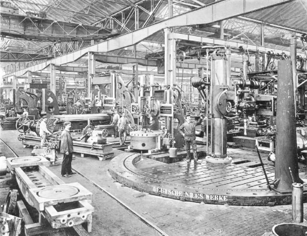 Großbanken und Industriebetriebe unter Beteiligung der AEG gründeten die Aktiengesellschaft „Deutsche Niles – Werkzeugmaschinenfabrik“ als Lizenznehmer der amerikanischen Niles Tool Campany in Ohio. Ziel war es, die nationale Fertigung zu stärken und die bis dahin führenden amerikanischen Produkte vom Markt zu verdrängen.